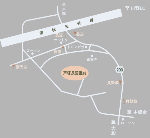 戸塚駅東口より「飯島団地行」または「大船駅行」約8分、バス停「長沼バス停」で下車後徒歩約5分